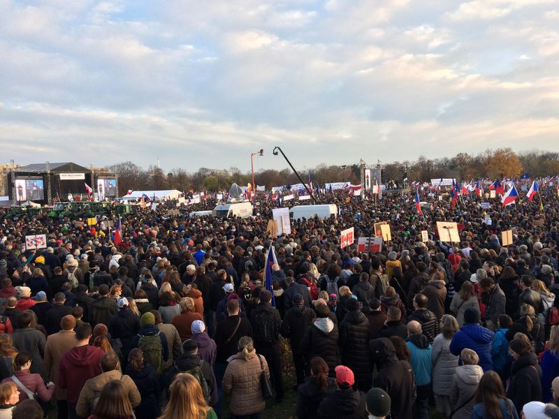 Plusieurs centaines de milliers de personnes ont célébré, samedi à Prague, le 30e anniversaire de la Révolution de velours, en manifestant contre le chef du gouvernement Andrej Babiš, qu'ils accusent d'abuser de son pouvoir.