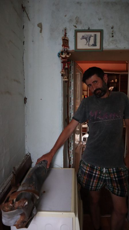 « Venez voir, je vais vous montrer mon appartement », intervient Anna. Chez elle, l’étendue des dégâts est frappante. Sur les trois pièces de son appartement, une seule est toujours habitable, l’air s’infiltre à travers les trous des vitres. Quant au salon, il n’y a plus de fenêtres.