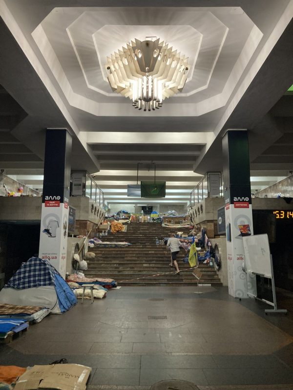À Saltivka Nord, il n’y a plus de transports en commun. Les trois dernières stations de métro censées desservir le quartier sont fermées pour raisons de sécurité : plusieurs dizaines de locaux qui n’ont pas d’endroit où s’abriter vivent toujours sur les quais.