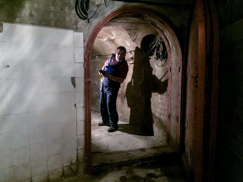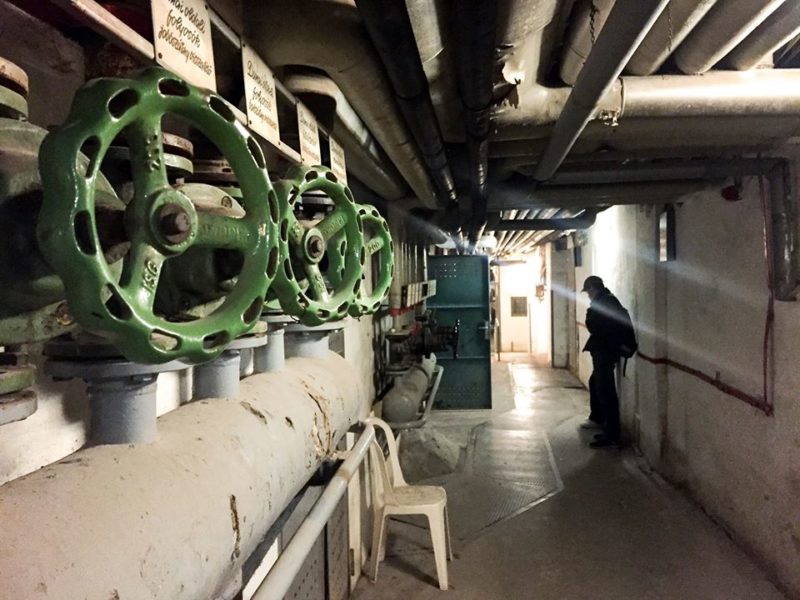 En la suivant à travers les sous-sols de Gellért, c’est une atmosphère humide, presque étouffante qui prend à la gorge. Seul le bruit des machines se fait entendre à travers les tunnels. La lumière d’une lampe frontale et quelques outils permettent de repérer les ouvriers. Ils vérifient les arrivées d’électricité essentielles à l’alimentation des bassins.