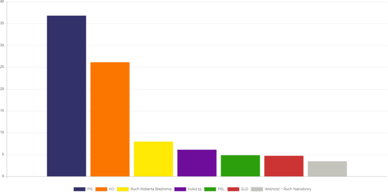 Un PiS en léger recul, une opposition renforcée mais divisée, et une jeunesse tentée par l'extrême-droite. Voici les principales leçons des intentions de vote pour les prochaines élections européennes en Pologne, selon un sondage Ipsos commandé par OKO.press.