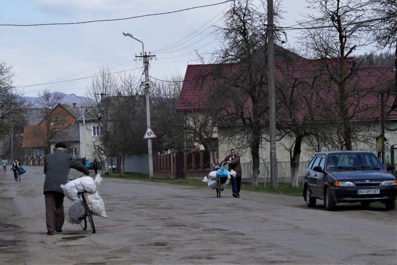 Oblast de Transcarpatie, Ukraine – Nijnie Selichtche n’a, en apparence, pas grand-chose à cacher. Niché aux pieds des Carpates ukrainiennes, ce petit village reculé, posé le long d’une route aux mille nids de poule, respire le travail besogneux et la rugosité de la vie. Les modestes maisons aux murs décrépis, les vieilles Lada, les calèches et les bicyclettes branlantes qui déplacent les 3 000 âmes de l’endroit en témoignent. Devant la fromagerie, ou au détour d’un potager tout juste labouré comme il y en a des centaines ici, on croise au milieu des pruniers et autres abricotiers en fleurs des visages abîmés par le temps. Des bras qui pour beaucoup travaillent la terre depuis petit. De ceux qui ont vécu quarante ans mais qui en font aux moins dix de plus.