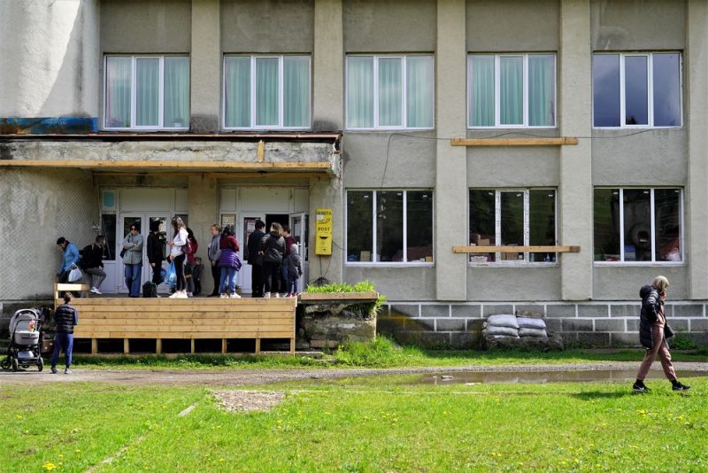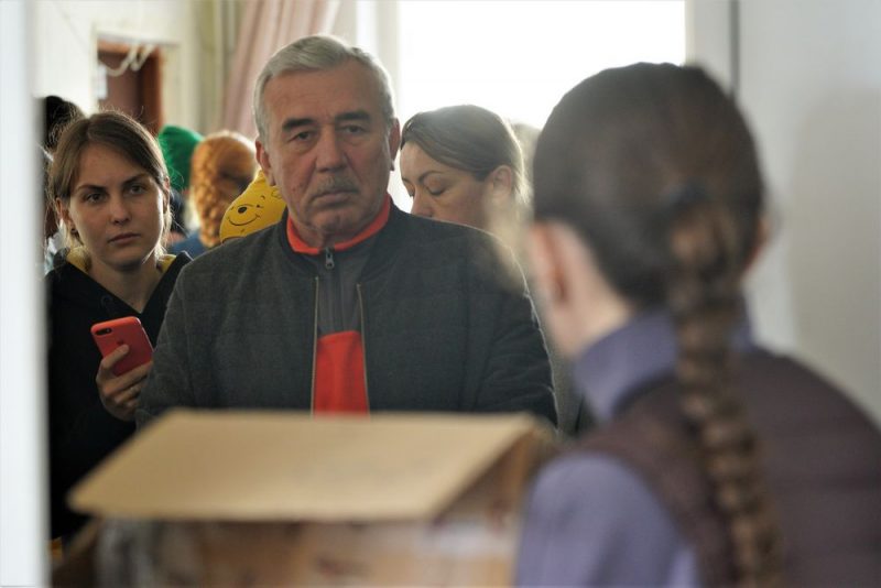 Devant l’ancienne maison de la culture, le premier mois, un grand nombre de gros 4×4 de marque allemande occupaient les places de parking improvisées. Parmi ces familles de déplacés, certaines vivent dans les hôtels de ce village touristique et continuent de travailler à distance, aujourd’hui encore. « On donnait énormément de nourriture, trop par rapport au rythme où nous étions approvisionnés », se souvient Dmytro. Le centre a dû revoir son organisation. « Désormais on n’envoie la nourriture que dans les espaces aménagés en cantine pour les déplacés, et ainsi on est sûrs que ceux qui vont manger là-bas sont principalement ceux qui en ont vraiment besoin », explique ce trentenaire qui, lorsqu’il ne court pas entre les stocks de sucre, de couches pour bébés et de pâtes, travaille sur son ordinateur pour une multinationale qui commercialise du thé.