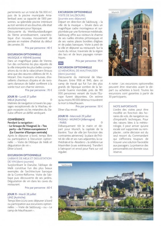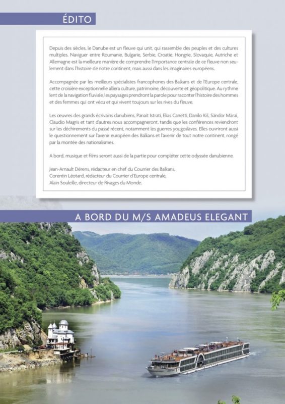 - Accompagnés par les meilleures spécialistes francophones des Balkans et de l’Europe centrale, cette croisière exceptionnelle alliera culture, patrimoine, découverte et géopolitique. Au rythme lent de la navigation fluviale, les paysages prendront la parole pour raconter l’histoire des hommes et des femmes qui ont vécu et qui vivent sur les rives du fleuve.