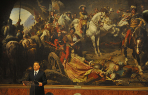 Parallèlement à l’exposition Des Héros, des Rois et des Saints, à la galerie nationale du château de Buda, l’exposition des illustrations de la nouvelle Constitution hongroise est un autre symbole fort de cette tendance : 15 tableaux commandés fin 2011 par Imre Kerényi, le commissaire personnel du Premier ministre, qui imposent l’interprétation subjective de la Fidesz comme récit officiel de l’Histoire contemporaine et de l’actualité politique hongroise. Certaines de ces croûtes sont d’ailleurs des chefs d’œuvre de réécriture de l’Histoire.