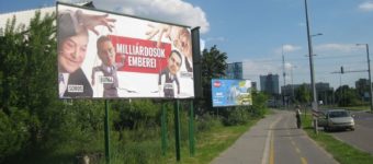 Une campagne d’affichage initiée par des jeunes partisans du Fidesz présente les opposant à Orbán comme les marionnettes de Georges Soros et Lajos Simicska.