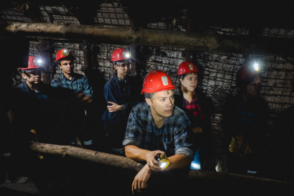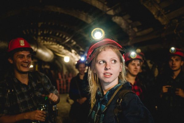 Aujourd’hui encore, Sylwia, à la longue queue de chevale blonde, se plie aux rituels immémoriaux de la mine. Après avoir récupéré un jeton, elle rejoint le vestiaire. Là, elle se glisse dans sa tenue de circonstance : pantalon, chemise, veste, ceinture, chaussettes, chaussures, sac à bandoulière, casque. Dans la salle des pendus, elle hérite d’une lampe frontale et d’une bonbonne à oxygène, avant de s’engager dans l’ascenseur. Entourée de pancartes imagées rappelant les dangers souterrains, elle s’engouffre avec ses pairs dans une cage en métal brinquebalante. La descente commence. Marcin – le technicien et Piotr Buffi, le responsable de la formation, s’efforcent de détendre l’atmosphère en cette période d’examens. À la sortie, les apprentis mineurs débarquent à 370 mètres sous terre au « pole szkoleniowe ». Un vrai terrain d’études, à l’abri du coup de grisou. C’est Piotr Buffi qui en est à l’origine. Cet enseignant de 46 ans est l’un des fondateurs de cette école unique en Pologne, située au fond d’une mine toujours exploitée. Là, 21 étapes apprennent à « ces jeunes pousses » l’alpha et l’oméga de l’extraction minière même si elles n’y travailleront probablement pas directement.