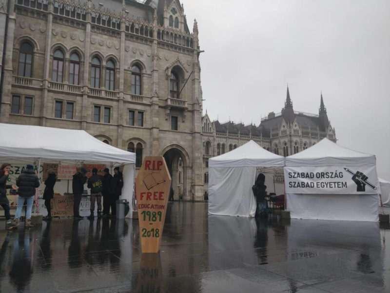 Un collectif regroupant des étudiants issus de différentes universités de Budapest occupe la place du Parlement afin de protester contre les attaques du gouvernement hongrois contre la liberté académique. Reportage.