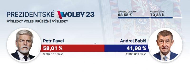 Au premier tour, deux semaines plus tôt, Pavel et Babiš étaient sortis au coude-à-coude avec 35 % des voix chacun. 4 candidats défaits s’étaient reportés sur Petr Pavel mais aucun sur Andrej Babiš.