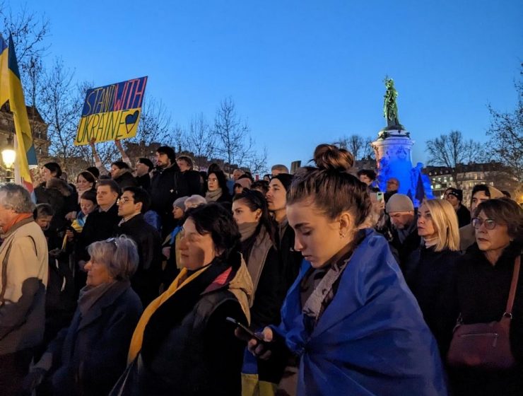 Samedi après-midi, au lendemain d’une plus large manifestation en soutien à l’Ukraine, quelques dizaines d’exilés russes ont crié leur opposition à la guerre et à Vladimir Poutine, sous les fenêtres…